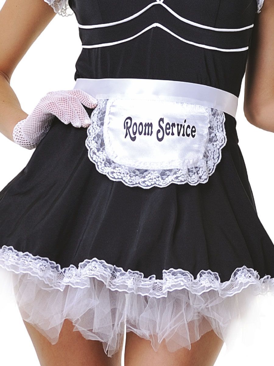 Мужчине, когда в его номере работает такая обворожительная горничная, грех выходить из комнаты. Как сексуально она нагибается к полу, чтобы поднять разбросанные вещи. Как кокетливо приподнимает ножку, стирая пыль с полок. А что она делает в постели, ммм! Лебедей из полотенец… а вы что подумали? В комплекте: платье, фартук, лента на шею, головной убор, чулки, перчатки.