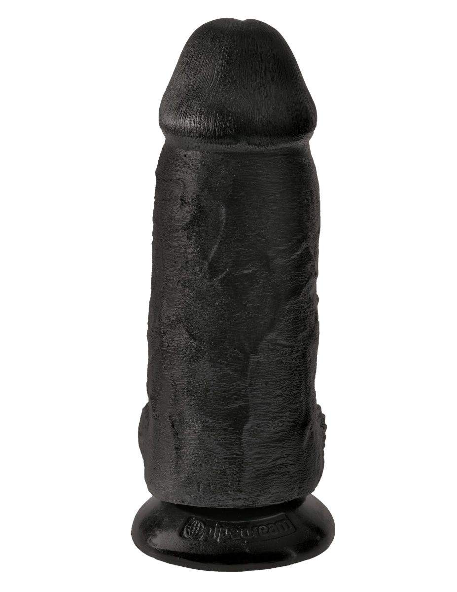 Черный фаллоимитатор с мошонкой на надежной присоске в основании. Ярко выраженный рельеф поверхности. Ствол с богатым рисунком поверхности. Рабочая длина - 17,1 см.